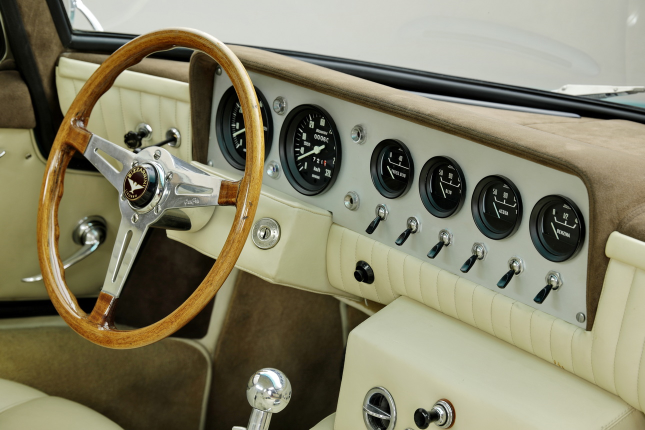 This Bizzarrini GT Strada 5300 is in excellent condition and perfectly reflects the exclusive and eccentric flair of an Italian small-series manufacturer. The turquoise green metallic paintwork with a light-coloured interior also contributes impressively to its sophisticated extravagance. Moreover, the advanced but solid US drive technology of the powerful V8 engine from the Chevrolet Corvette with 355 hp is also a strong feature of the Bizzarrini. An owner can be sure that the spectacular design of the ultra-flat body always attracts attention and admiration. A Bizzarrini is a racy and purist ‘driver's car’ that offers an incomparable experience – both on the road and at any high-profile concours event.
