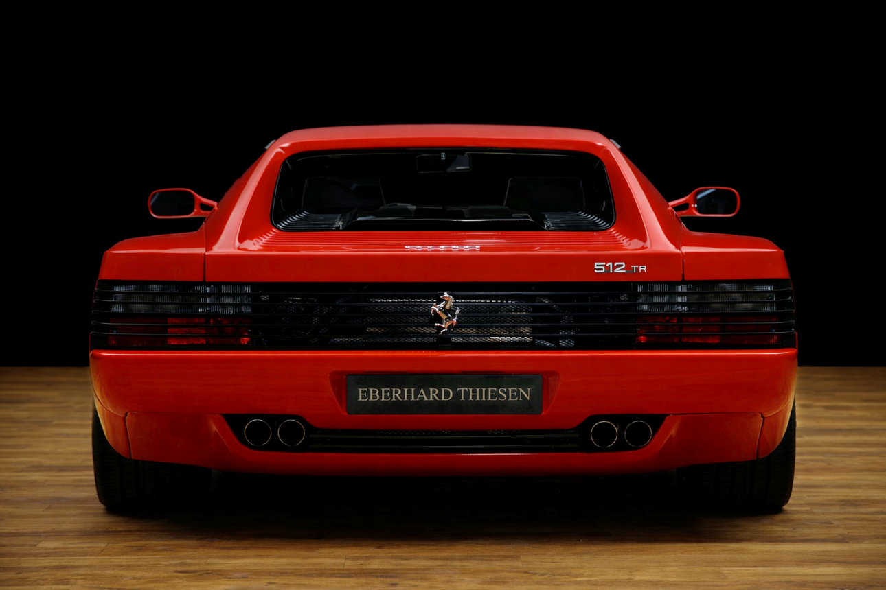 This Ferrari 512 TR was delivered on 26 August 1993 by Ferrari dealer Tamsen in Bremen. The dream sports car of the early 1990s still features its original, classic colour scheme of Rosso Corsa with black leather interior.