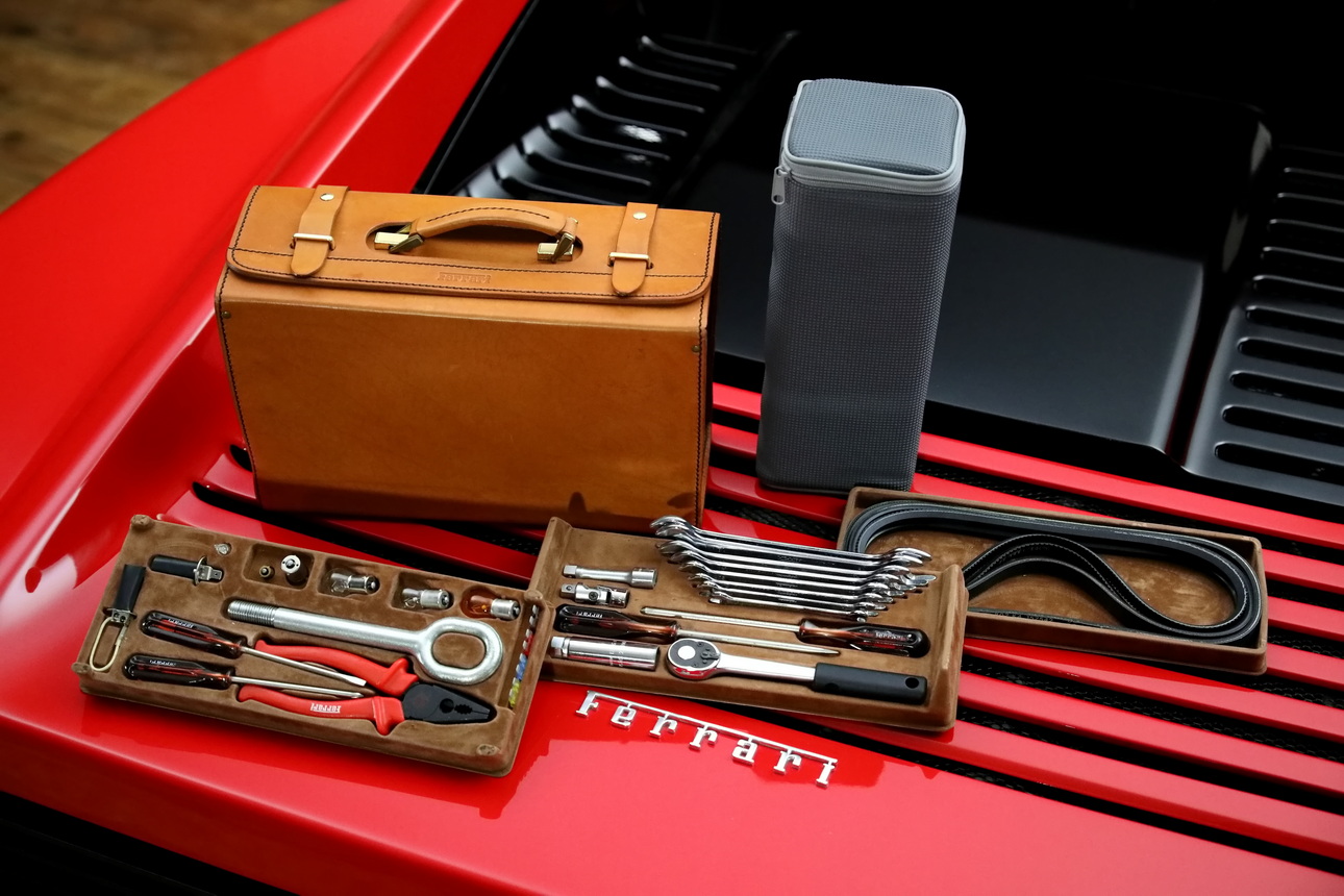 A valuable advantage of this Ferrari 512 TR is its complete ownership history and the fact that the car has always remained in Germany. The scope of delivery includes the original on-board folder with service booklet and all manuals, as well as the original tool kit in its leather case.