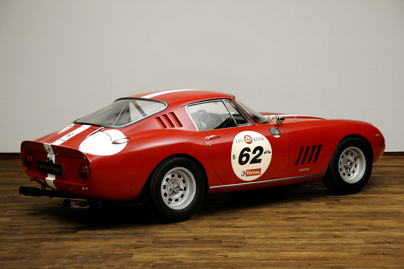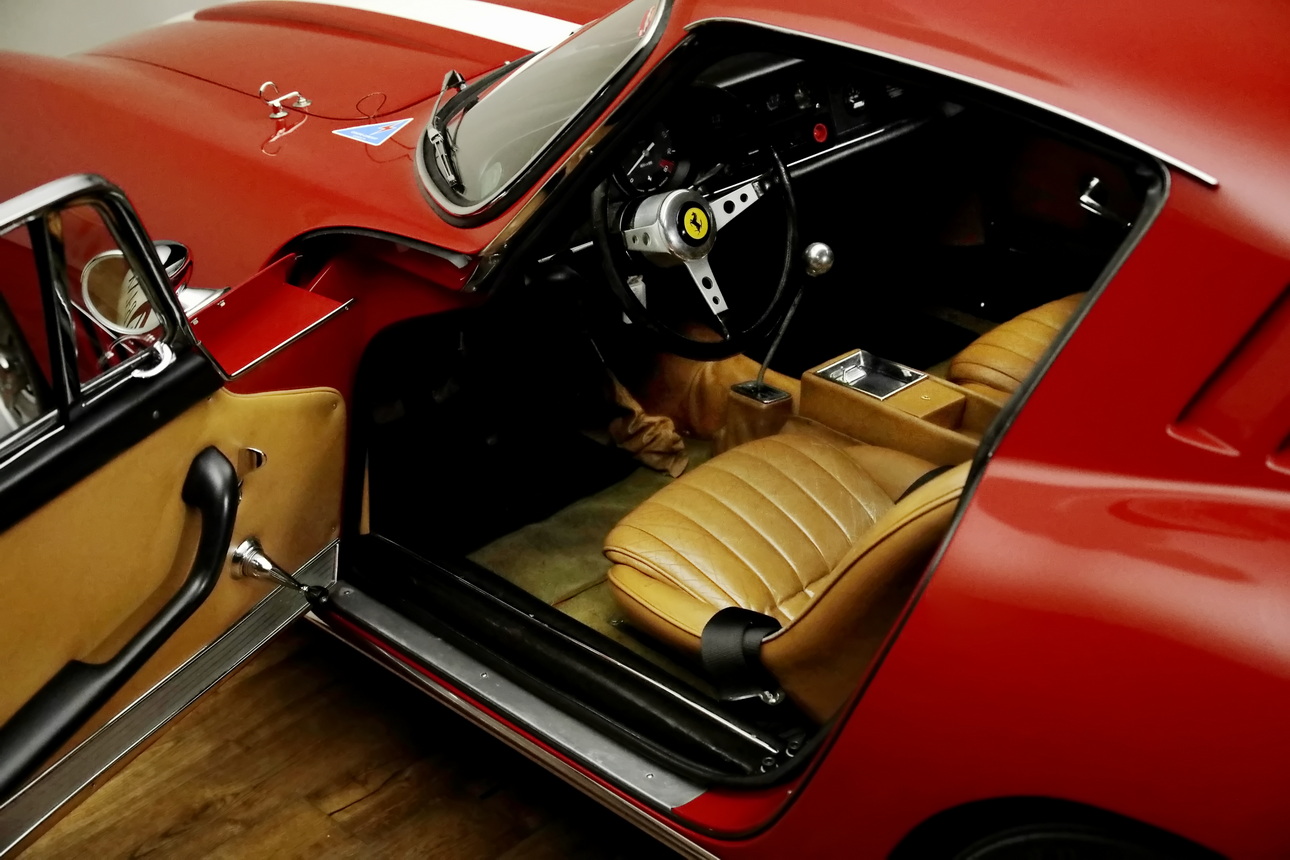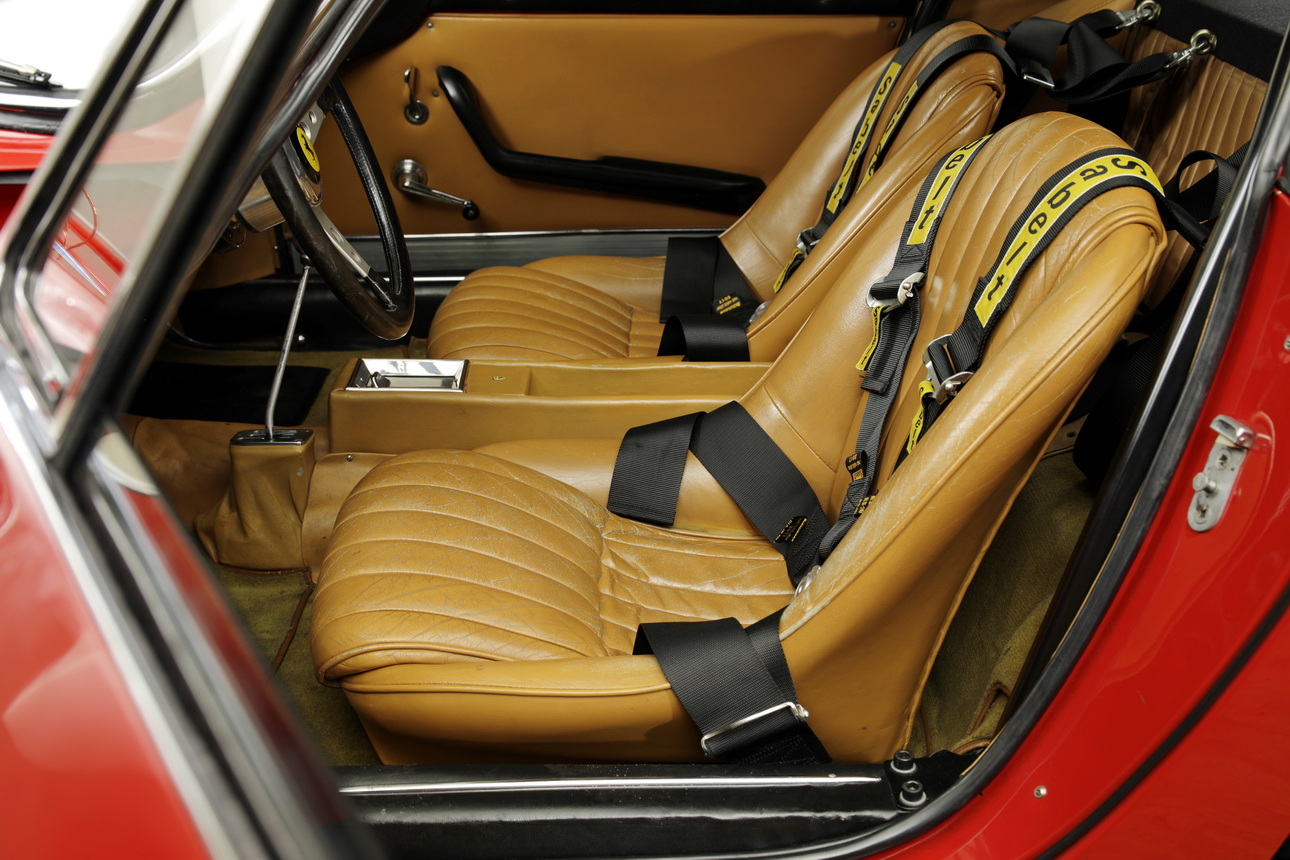 Ausstattung: Überrollbügel, Renn-Tankanlage, Auspuffanlage eines 250 GTO, Feuerlöschanlage, Sabelt-Renngurte, Magnesium-Felgen mit Zentralverschluss