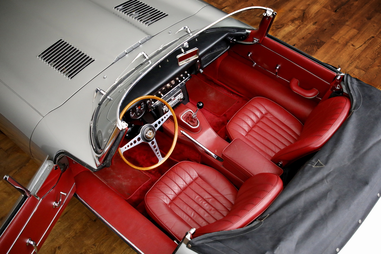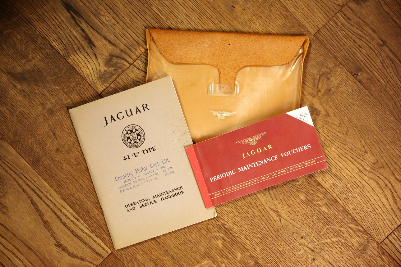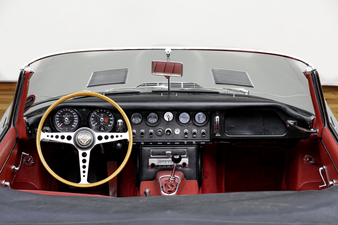Der Motor dieses E-Types ist noch das originale Aggregat („Matching Numbers“) und auch der Zylinderkopf ist noch der erste. Der Sportwagen trägt heute sein originales Farbschema (siehe oben), das dieser britischen Automobil-Ikone ausgezeichnet steht. Begleitet wird der Wagen vom originalen Bedienungshandbuch und Serviceheft. Dieses E-Type Exemplar aus der begehrten Serie I als Open Two Seater überzeugt mit seinem originalen und soliden Zustand mit leichter Patina. Man kann den Wagen als „Driver Car“ so fahren und genießen wie er ist oder in einigen Punkten weiter optimieren, je nach individuellem Bedarf und Geschmack.