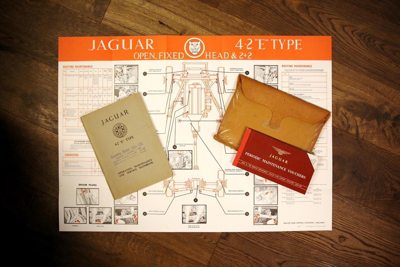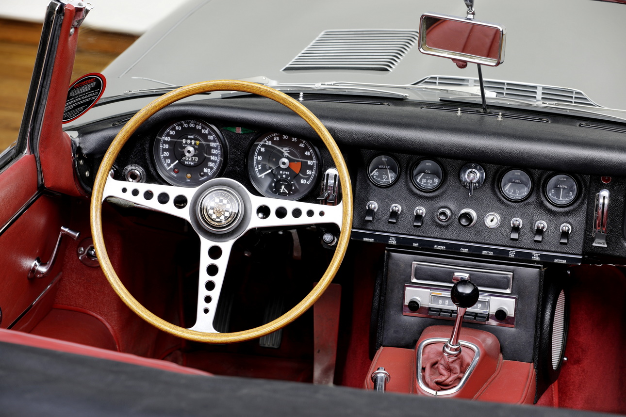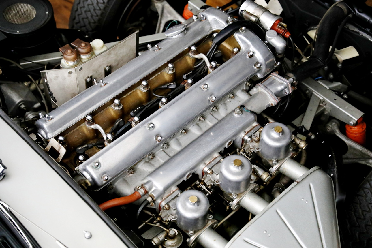 Der Motor dieses E-Types ist noch das originale Aggregat („Matching Numbers“) und auch der Zylinderkopf ist noch der erste. Der Sportwagen trägt heute sein originales Farbschema (siehe oben), das dieser britischen Automobil-Ikone ausgezeichnet steht. Begleitet wird der Wagen vom originalen Bedienungshandbuch und Serviceheft. Dieses E-Type Exemplar aus der begehrten Serie I als Open Two Seater überzeugt mit seinem originalen und soliden Zustand mit leichter Patina. Man kann den Wagen als „Driver Car“ so fahren und genießen wie er ist oder in einigen Punkten weiter optimieren, je nach individuellem Bedarf und Geschmack.