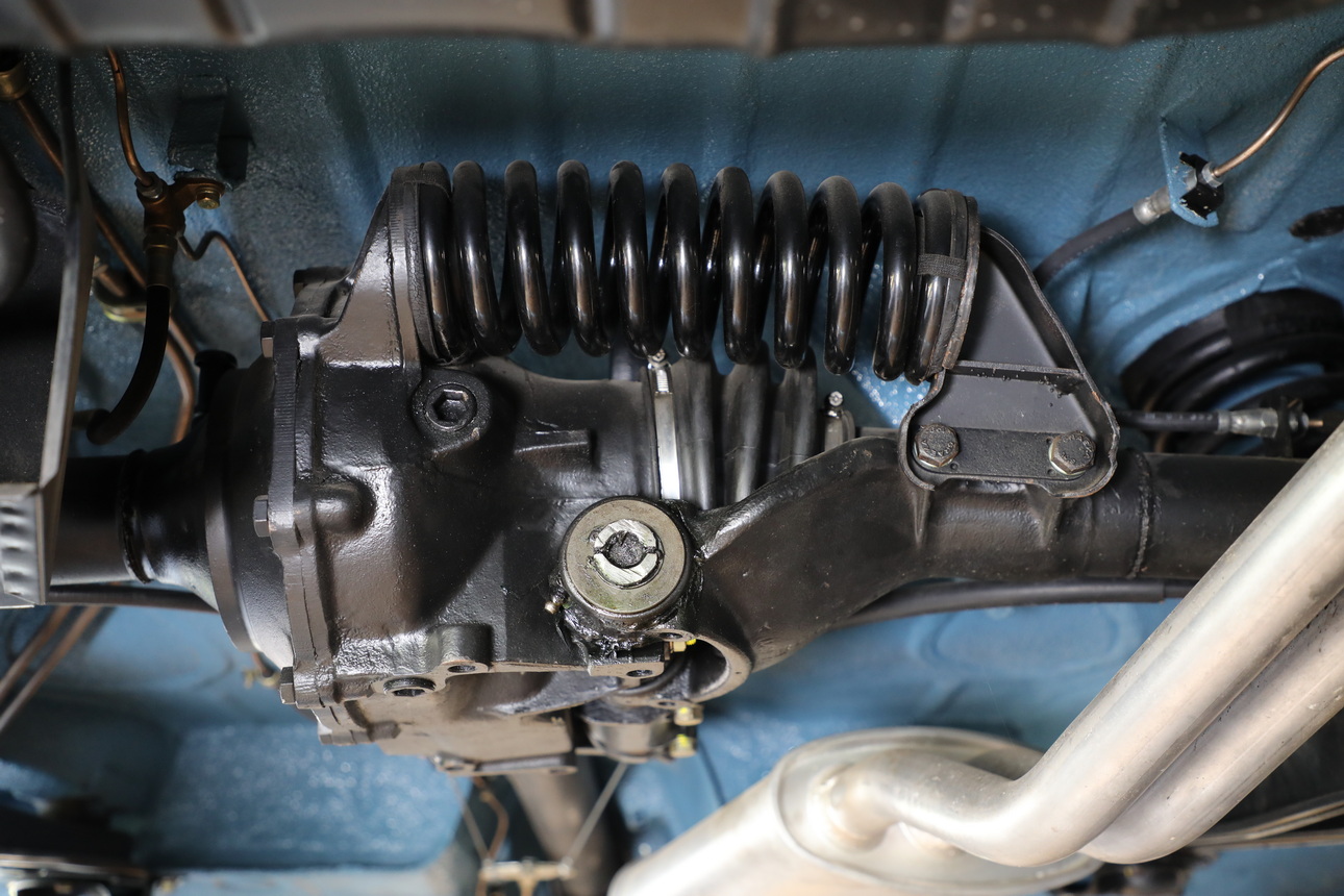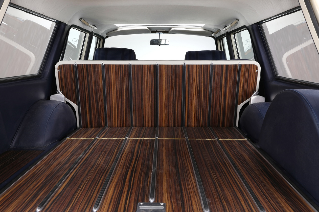 Sehr authentische und zeitgerechte Zweifarblackierung in weiß und hellblau; dazu ein neu gefertigtes Interieur in Karostoff blau