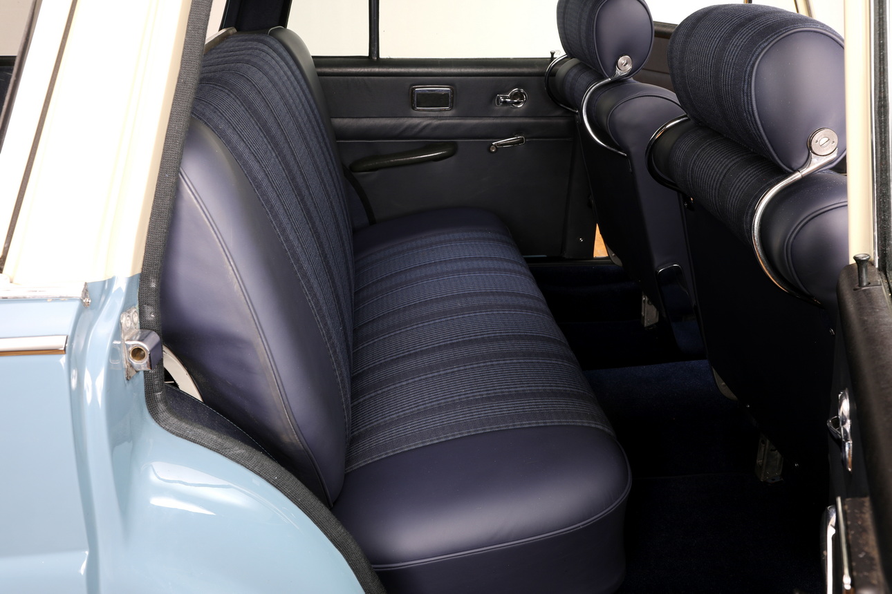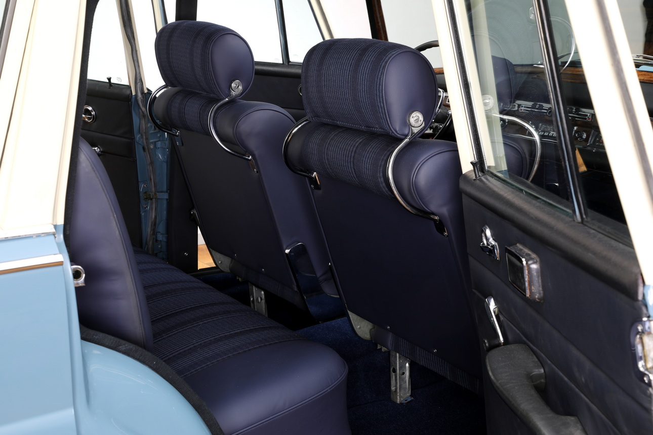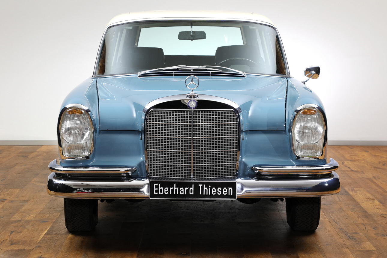 Dieser 230 S Universal erhielt in den 1990er Jahren ein neues Blechkleid, als man noch Türen, Kotflügel und die Unterbodenanlage bei Mercedes erwerben konnte. Die Rechnungen dafür liegen im Original vor. Da die werksneuen Restbestände des speziellen Zierrats von der Firma Karasch in diesem Wagen verbaut wurden, dürfte es künftig schwierig sein, sich auf solch ein Restaurierungsabenteuer einzulassen. Bei Karosserie und Innenraum wurde großer Wert auf Originalität gelegt.