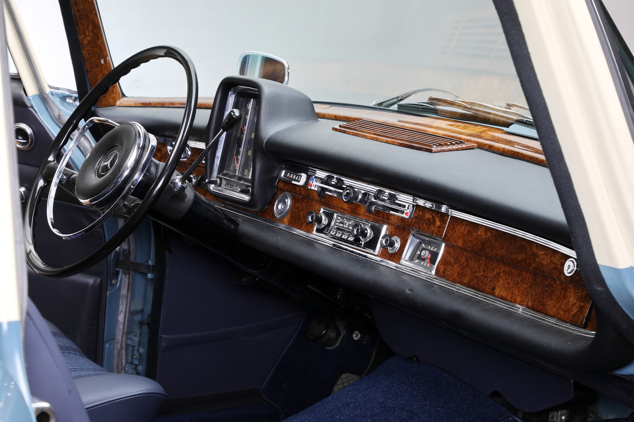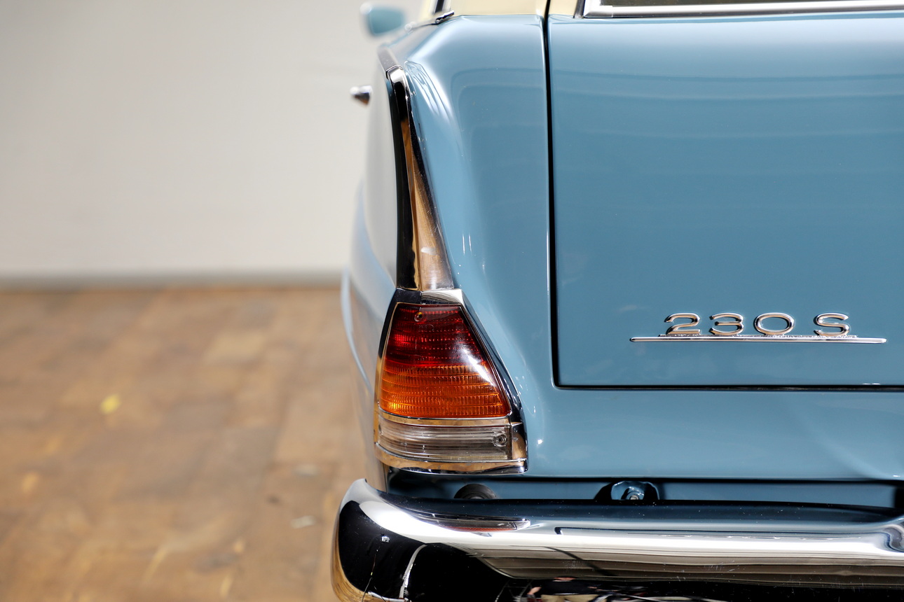 Hinsichtlich Technik und Antrieb standen Sicherheit und Fahrkomfort im Vordergrund. Deshalb wurde der Wagen mit einem zeitgenössischen, überholten 280 SE Motor (W108) und einem Automatik-Getriebe ausgestattet, was für ein entspanntes Fahren sorgt. Die Achsen wurden mit Scheibenbremsen ausgerüstet. Der Mercedes 230 S Universal ist sicherlich der schönste und seltenste Kombi, der von Mercedes verkauft wurde. Er verkörpert wie kaum ein anderer Oldtimer der 1960er Jahre das Lebensgefühl seiner Zeit mit viel Platz und einem hohen Gebrauchswert – z.B. für das Oldtimererlebnis mit der ganzen Familie.