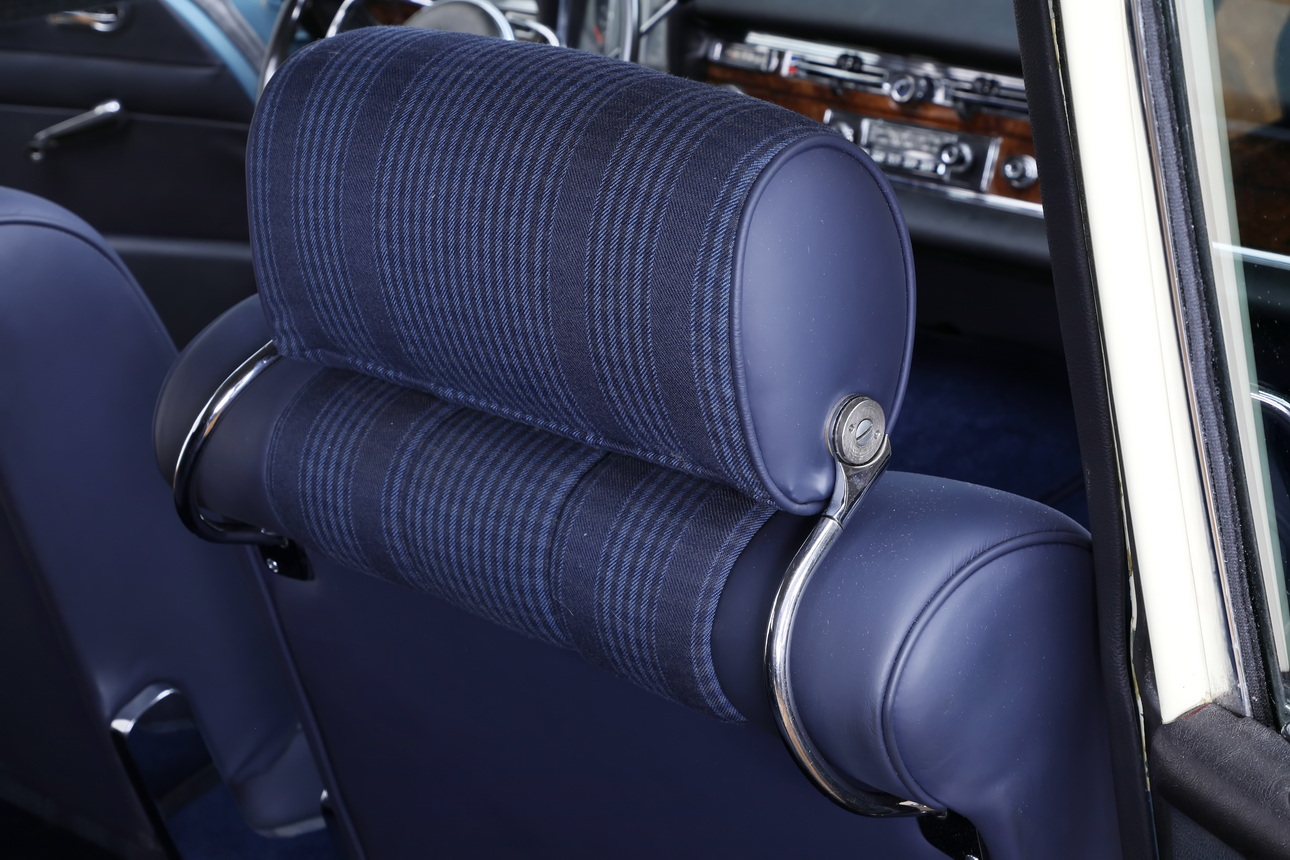 Dieser 230 S Universal erhielt in den 1990er Jahren ein neues Blechkleid, als man noch Türen, Kotflügel und die Unterbodenanlage bei Mercedes erwerben konnte. Die Rechnungen dafür liegen im Original vor. Da die werksneuen Restbestände des speziellen Zierrats von der Firma Karasch in diesem Wagen verbaut wurden, dürfte es künftig schwierig sein, sich auf solch ein Restaurierungs-abenteuer einzulassen. Bei Karosserie und Innenraum wurde großer Wert auf Originalität gelegt.